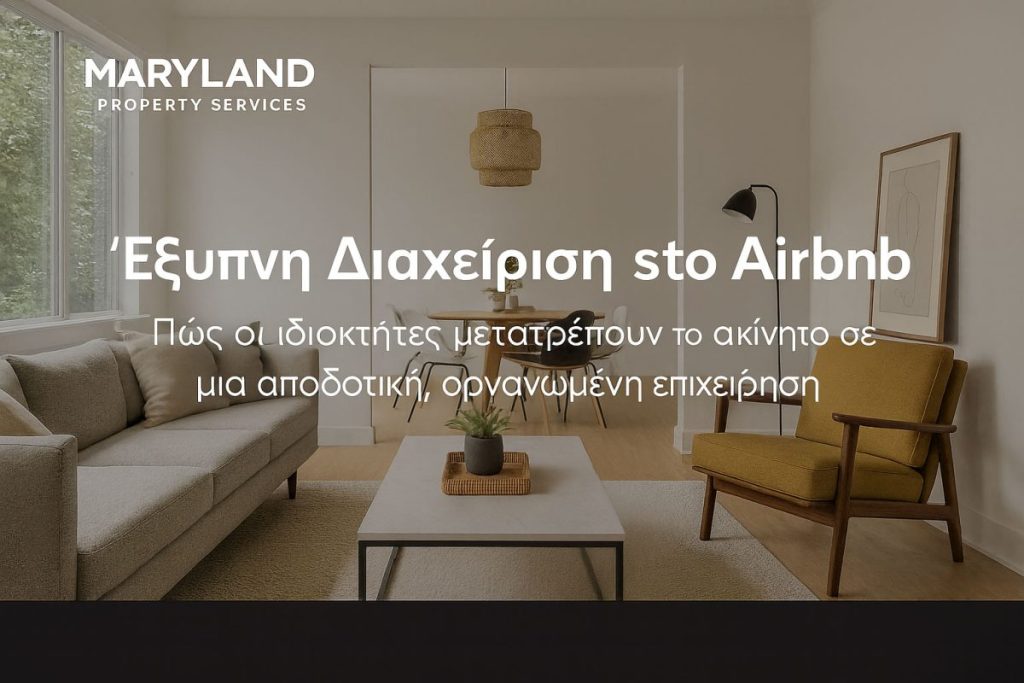 ✦ Για πλήρη και ασφαλή διαχείριση ακινήτου Airbnb, με νομική και τεχνική κάλυψη, επικοινωνήστε με τη Maryland Property Services – αναλαμβάνουμε τη φροντίδα του ακινήτου σας από τη συντήρηση έως τη φιλοξενία.